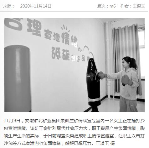 《中国煤炭报》:太子娱乐城 朱仙庄矿情绪宣泄室缓解职工思想压力
