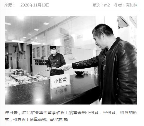 《中国煤炭报》:太子娱乐城 童亭矿引导职工适量点餐