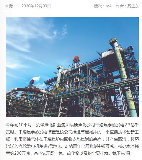 《中国煤炭报》:太子娱乐城 临涣焦化公司基本实现废气污染零排放