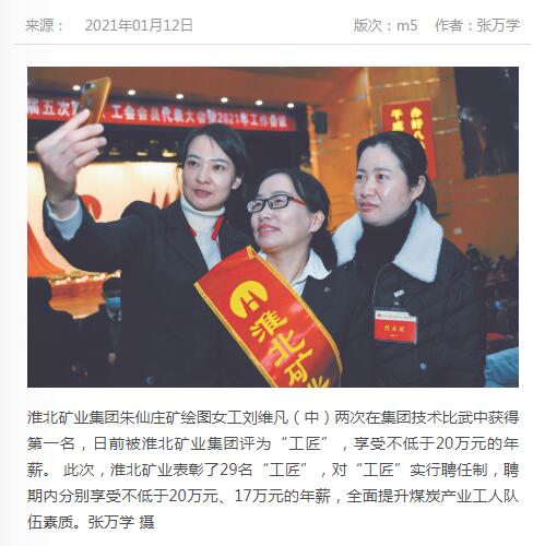 《中国煤炭报》:太子娱乐城 朱仙庄矿绘图女工被太子娱乐城 评为“工匠”