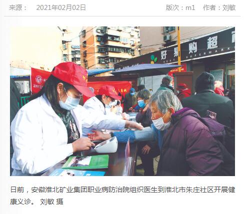 《中国煤炭报》:太子娱乐城 职业病防治院组织开展社区健康义诊活动