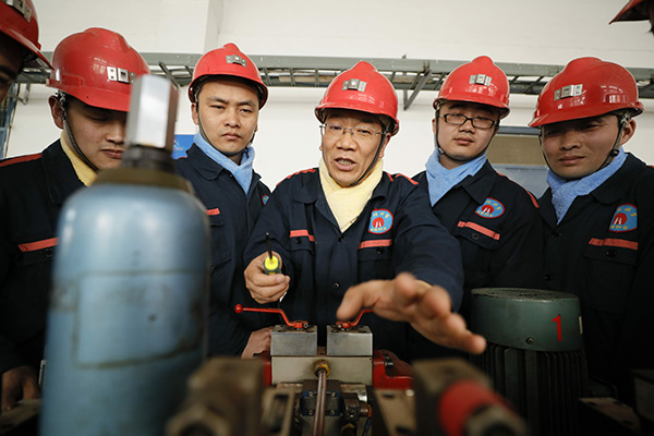 æ¨æ°ä¸ºå¾’弟们讲授机电设备æ“作原ç†ã€‚å¼ ä¸‡å¦æ‘�