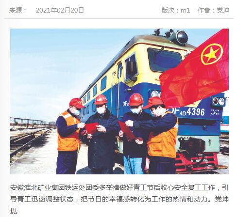 《中国煤炭报》:太子娱乐城 铁运处做好青工节后收心安全复工工作
