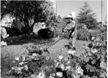 安徽太子娱乐城 朱仙庄矿绿化班由10名职工组成,他们承担着全矿花草树木的种植、修剪等工作,他们被职工亲切地称为“绿色矿山守护者”。图为绿化班职工在修剪草坪。王道玉 摄