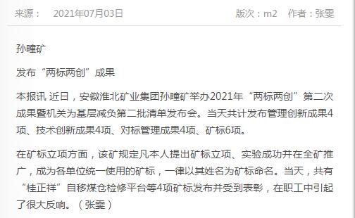 《中国煤炭报》:太子娱乐城 孙疃矿发布“两标两创”成果