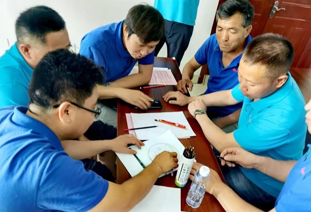 “各位师傅,我们先做一个热身活动,大家各自报数,然后按照所报数字迅速找到自己的团队!”短暂的开场活动热身,职工的情绪开始被调动起来,活动先从能体验团队精神及个体发挥相结合的曼陀罗绘画开始,职工随手涂鸦并逐一上台解读: