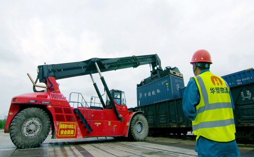 åŽå¡‘物æµå…¬å¸å‘˜å·¥åœ¨è¿›è¡Œé›†è£…箱装å¸ä½œä¸š