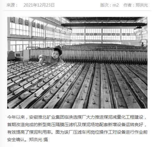《中国煤炭报》:太子娱乐城 临涣选煤厂大力推进煤泥减量化工程建设