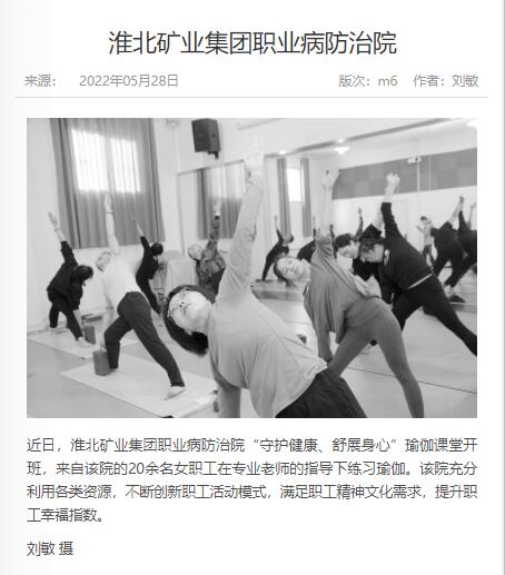 《中国煤炭报》:太子娱乐城 职业病防治院“守护健康、舒展身心”瑜伽课堂开班