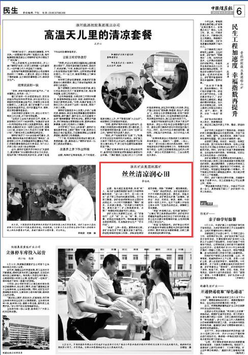 “凉饮”供应花样多。该矿在地面井口大厅不间断供应绿豆茶、菊花茶、淡盐水和净化水。该矿常态化开展“送清凉、保安全”活动,把西瓜、绿茶、雪糕、牛奶送到一线职工手中;在井下各乘人车场设立饮水点和“应急药品供应点,保障职工身体健康。