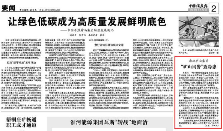 如今,该集团安全监管人员打开智能手机,就能随时随地通过远程视频监控系统,对所有矿井生产系统进行检查,充分发挥了“矿山网警”作用。