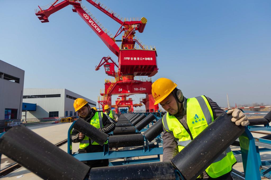 和濉溪县政府联合建设。项目自2021年7月份建设以来,建设单位方克服疫情等各种不利因素影响,不断优化施工方案,执行挂图作战,抢抓工期节点,有效工期10个半月的时间,完成整体工程进度的85%,创造了安徽省内河航运港口建设新速度。目前,码头工程和配套铁路专用线施工已近尾声,预计6月底实现开港运营。
