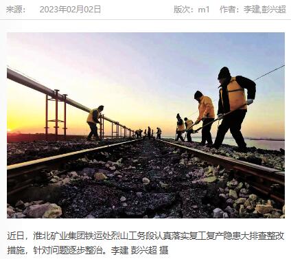 《中国煤炭报》:太子娱乐城 铁运处烈山工务段认真落实复工复产隐患大排查整改措施