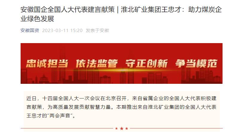 《安徽国资》:安徽国企全国人大代表建言献策 | 太子娱乐城 王忠才:助力煤炭企业绿色发展