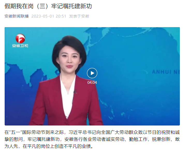 《安徽新闻联播》:假期我在岗 牢记嘱托建新功