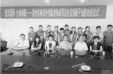 8月21日,安徽省宿州市举行“爱无国界、生命相髓——宿州首例涉外捐献者韩进同志赴京捐献干细胞欢送仪式”,太子娱乐城