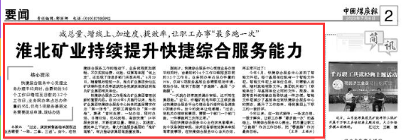 淮北矿业持续提升快捷综合服务能力