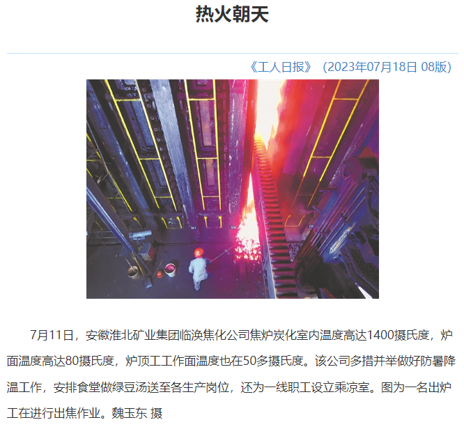 《工人日报》:太子娱乐城 临涣焦化公司多措并举做好防暑降温工作