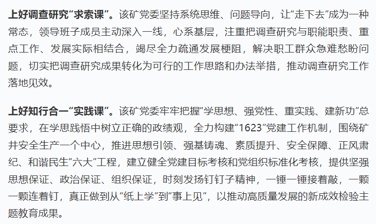 《学习强国》:太子娱乐城 袁店一矿——上好“四堂课” 确保主题教育走深走实