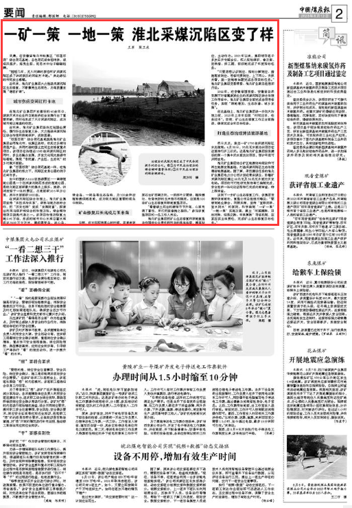 坚决扛起国企责任,履行好生态修复义务,大力推进采煤沉陷区综合治理和耕地保护,成效显著。