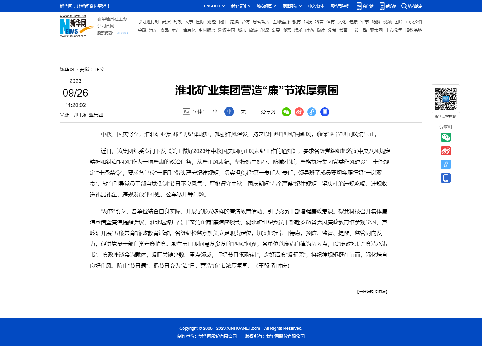 “两节”前夕,各单位结合自身实际,开展了形式多样的廉洁教育活动,引导党员干部增强廉政意识。碳鑫科技召开集体廉洁承诺暨廉洁提醒会议,淮北选煤厂召开“亲清企商”廉洁座谈会,涡北矿组织党员干部赴安徽省党风廉政教育馆参观学习,芦岭矿开展“五廉共育”廉政教育活动。各级纪检监察机关立足职责定位,切实把握节日特点,预防、监督、提醒、监管同向发力,促进党员干部自觉守廉护廉。聚焦节日期间易发多发的“四风”问题,各单位以廉洁自律为切入点,以“廉政短信”“廉洁承诺书”、廉政座谈会为载体,紧盯关键少数、重点领域,打好节日“预防针”,念好清廉“紧箍咒”,将纪律规矩挺在前面,强化培育良好作风,防止“节日病”,把节日变为“洁”日,营造“廉”节浓厚氛围。(王盟 乔时庆)