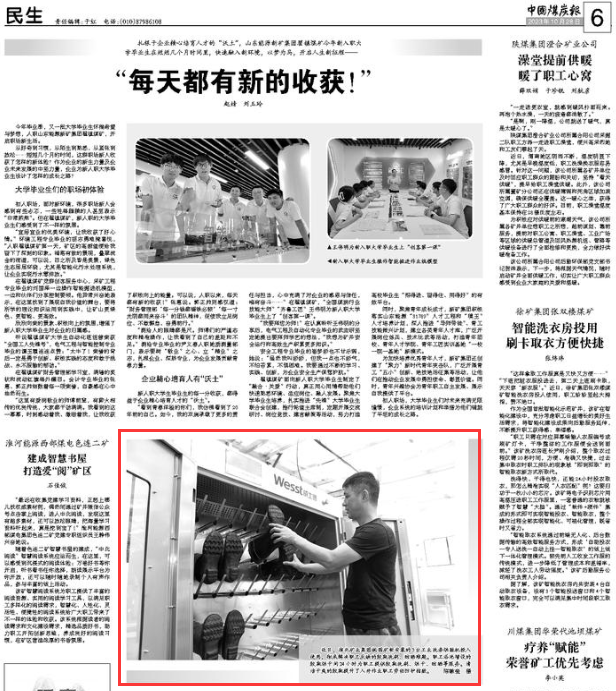 近日,太子娱乐城 桃园矿新安装的3台工业洗涤烘鞋机投入使用,彻底解决职工反映的胶靴洗刷、晾晒难题。职工浴池增设的胶靴烘干间24小时为职工提供胶靴洗刷、烘干、晾晒等服务。清洁干爽的胶靴提升了入井作业职工劳动防护指数。陈敏奎 摄