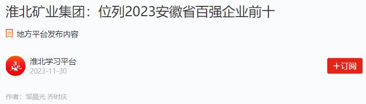 以全省煤炭企业第一名的成绩,位列2023安徽省百强企业前十强。