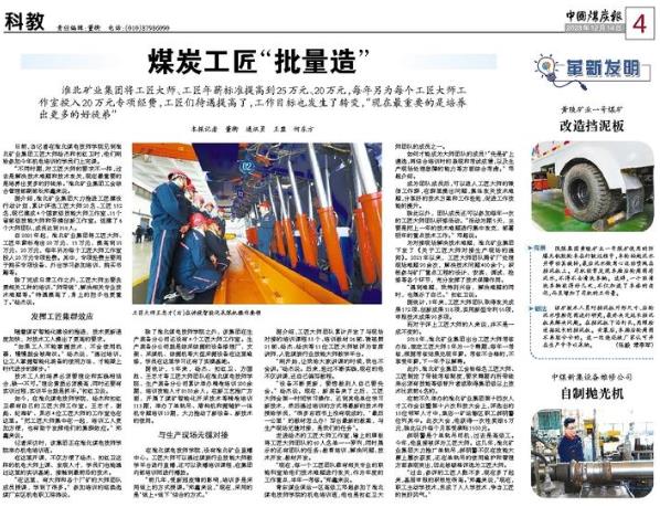 据统计,5年来,杨杰、扣红卫、方国胜、王忠才等工匠大师团队在淮北煤电技师学院、生产装备分公司累计举办精准培训200余期,培训技能人才8100余人;在新工艺推广方面,开展了煤矿智能化开采技术等精准培训113期,举办了单轨吊、盾构机和掘锚护一体机专题培训19期,大力推动了新设备、新技术的使用。