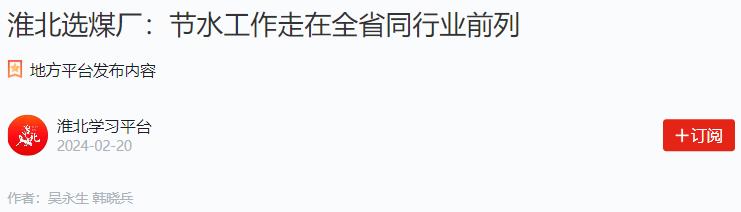 《学习强国》:淮北选煤厂节水工作走在全省同行业前列