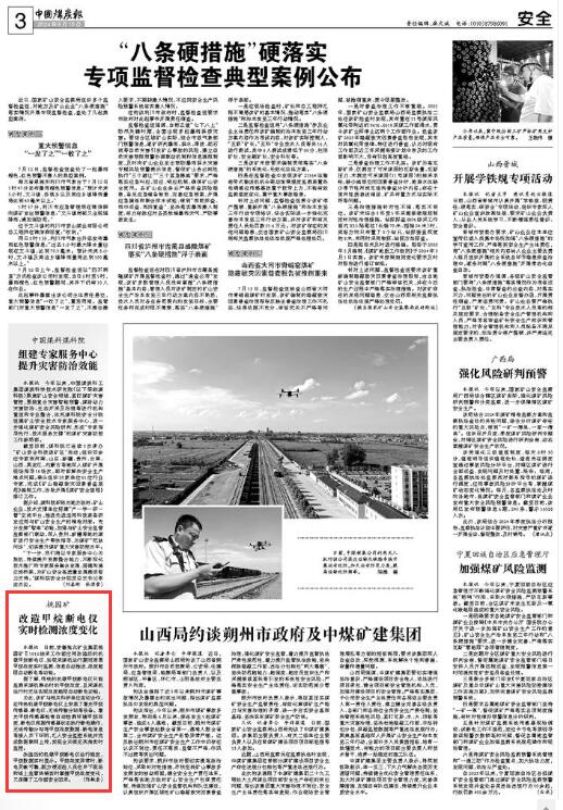 改造后的机载甲烷断电仪运行稳定,甲烷数据实时显示。甲烷浓度异常时,断电灵敏可靠,既方便巡检人员在井下现场和线上监管终端实时掌握甲烷浓度变化,又保障了工作面安全回采。(陈敏奎)