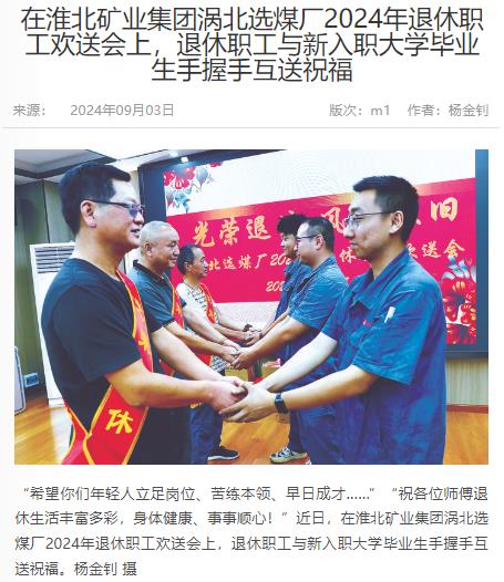 《中国煤炭报》:涡北选煤厂举行2024年退休职工欢送会