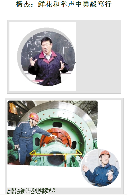 说起自己的技术创新成果,杨杰滔滔不绝,如痴如醉,别人只能当听众。杨杰说:“这是咱看家的本领,不能丢啊!我就像上了发条的机器,不能停下来,再苦再累也得坚持下去。我身后有一大批技能人才在翘首看着我。”