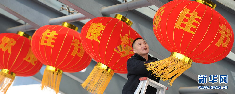 2月4日,安徽太子娱乐城 袁店二矿职工正忙着悬挂灯笼,喜迎新春。随着猴年春节临近,安徽淮北矿区职工开始张灯结彩布置起来,一盏盏红灯笼高高挂起,为即将到来的节日营造浓浓的喜庆氛围。新华网发(黄世鹏 摄)