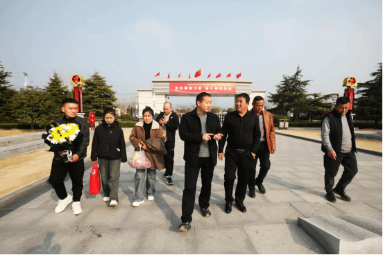 3月10日,前来“探亲”的刘广太一行5人,在淮海战役双堆集烈士陵园镌刻有刘文庆烈士姓名的英烈墙下祭奠,用家乡的酒、家乡的土,让烈士时隔77年,再一次闻到家乡泥土的芬芳,品尝家乡美酒的醇香。