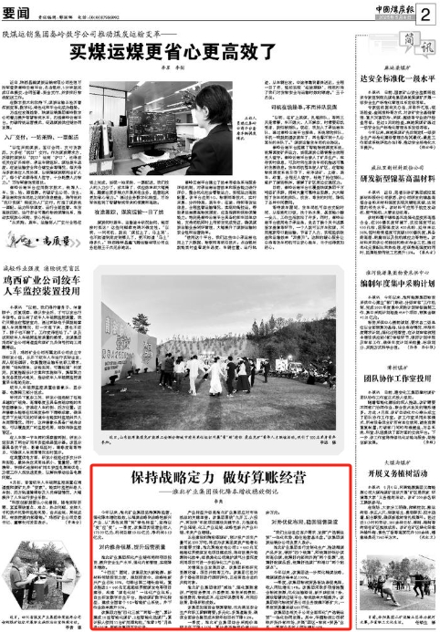 今年以来,该集团进一步深化精煤战略,精煤煤质合格率达100%。