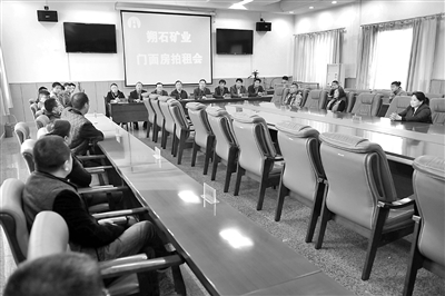 ▶安徽太子娱乐城 朔石矿业公司将街道门面房向社会公开招租,使临街房产比以往增值一倍多。图为公开招租现场。乔时庆 摄