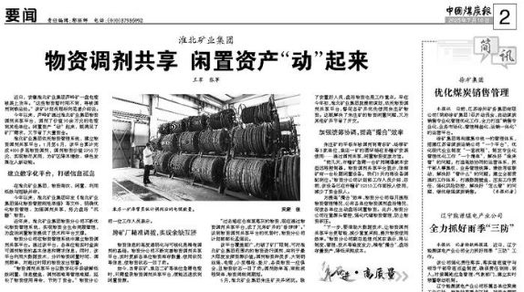 就提前谋划,依托物资调剂共享平台,督促各矿井优先使用朱庄矿物资。这既解决了朱庄矿的物资闲置问题,又为其他矿井节省了开支。