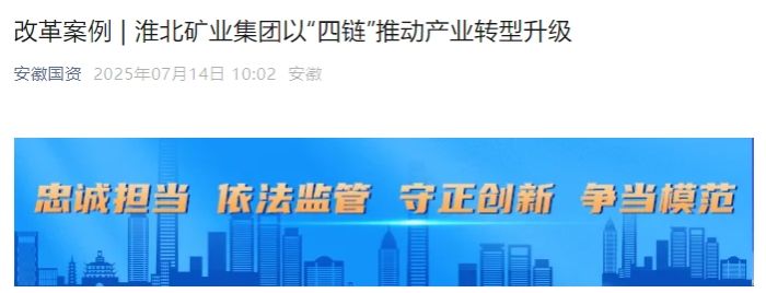 安徽国有ä¼ä¸šèšç„¦å¢žå¼ºæ ¸å¿ƒåŠŸèƒ½ã€æå‡æ ¸å¿ƒç«žäº‰åŠ›ï¼Œæ‰Žå®žæŽ¨è¿›å›½æœ‰ä¼ä¸šæ”¹é©æ·±åŒ–æå‡è¡ŒåŠ¨ï¼Œæ›´å¥½å‘æŒ¥ç§‘技创新ã€äº§ä¸šæŽ§åˆ¶ã€å®‰å…¨æ”¯æ’‘ä½œç”¨ï¼Œæ¶ŒçŽ°å‡ºäº†ä¸€æ‰¹å…·æœ‰ç¤ºèŒƒå¸¦åŠ¨ä½œç”¨çš„æ”¹é©æˆæžœå’Œå®žè·µæ¡ˆä¾‹ã€‚近期,“安徽国资â€å°†é™†ç»æŽ¨å‡ºç³»åˆ—报é“。今天为大家带æ¥ã€Šæ·®åŒ—çŸ¿ä¸šé›†å›¢ä»¥â€œå››é“¾â€æŽ¨åŠ¨äº§ä¸šè½¬åž‹å‡çº§ã€‹ã€�