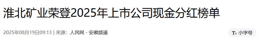 此次荣登现金分红榜单,不仅是对淮北矿业过往良好经营业绩和积极分红政策的认可,也表明公司在资本市场上对投资者利益的重视。在市场环境波动的背景下,淮北矿业凭借稳定的股息派发,为股东带来了可靠且可观的收益,成为投资者信赖的优质选择。