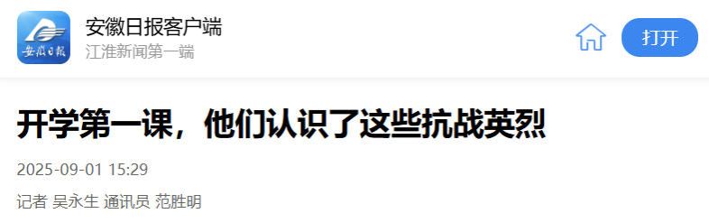 今年恰逢中国人民抗日战争暨世界反法西斯战争胜利80周年。开学首日,濉溪县双堆集镇关工委邀请周杨将爱国主义教育融入“开学第一课”,引导小学生们铭记历史、缅怀先烈,传承弘扬伟大抗战精神。