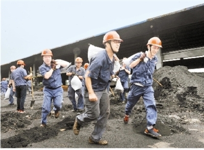 淮北选煤厂举行防汛抢险应急演练。韩晓兵 摄