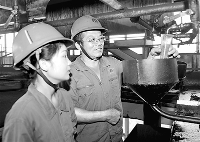 日前,安徽太子娱乐城 淮北选煤厂通过举办名师高徒大赛等活动,提升员工素质。图为选煤车间师徒两人在调试浮选设备用油比例。韩晓兵 摄