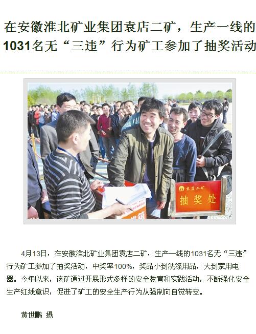 《中国煤炭报》1版:袁店二矿无“三违”矿工抽奖