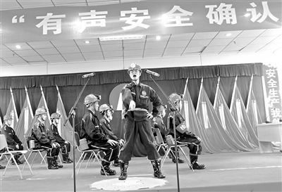 安徽太子娱乐城 杨柳煤业公司推进“现场有声安全确认”管理法,要求施工前、岗位交接、工序转换等环节必须进行有声安全确认。图为该公司综采一区职工模拟演示有声安全确认。祝大明 摄