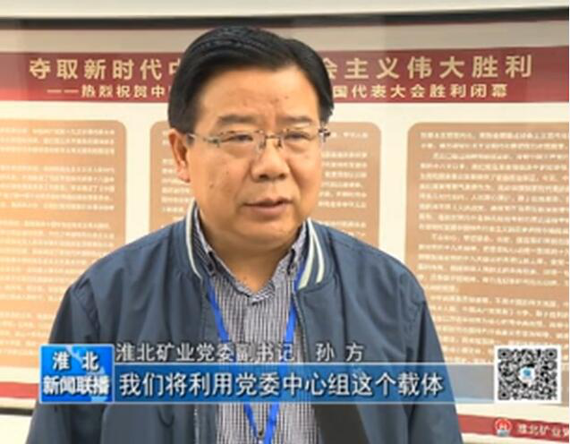 淮北市广播电台《淮北新闻联播》同步播发王忠才宣讲党的十九大精神的视频新闻,并专题采访淮北矿业党委副书记孙方。