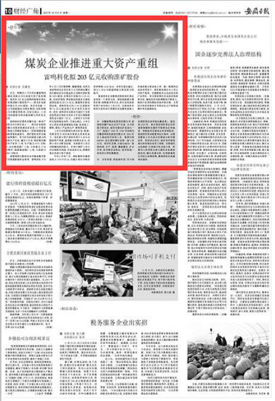 雷鸣科化拟203亿元收购淮矿股份