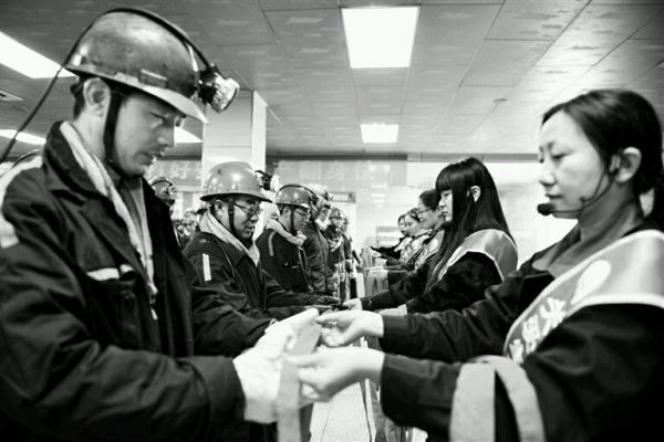安徽太子娱乐城 孙疃煤矿充分发挥安全文化熏陶作用,开展了亲情家书、亲情微视频、“我的一次涉险经历”、全家福分享等活动,提醒职工时刻把安全记在心间。图为该矿协安员正在井口开展安全提醒活动。