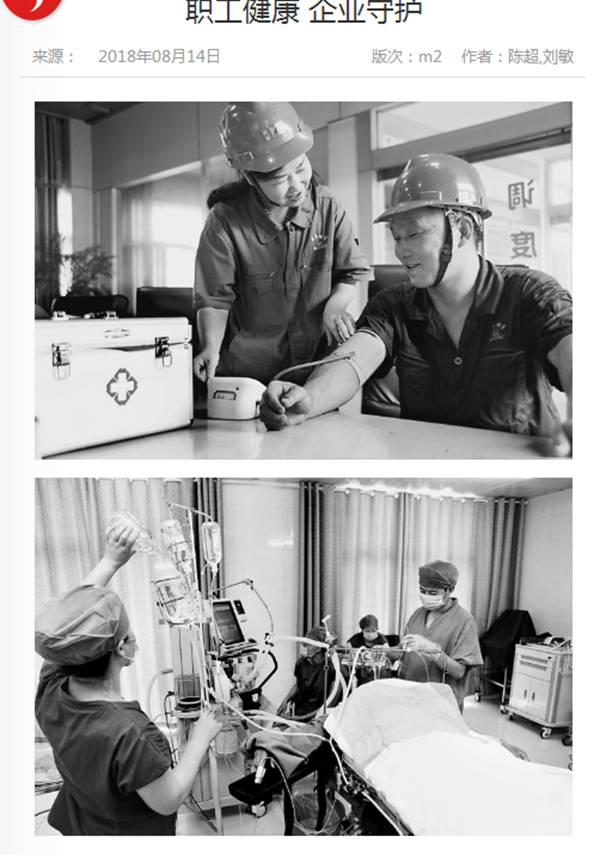 安徽太子娱乐城 淮北选煤厂朱仙庄分厂为各基层车间配备了应急药箱和血压仪,保障职工身心健康。图为该厂职工正在测量血压。陈超摄