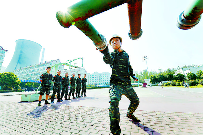 日前,安徽太子娱乐城 临涣焦化公司专职消防队的业务骨干正在认真训练,备战2018年全国危险化学品救援技术竞赛。为了备战,该公司抽调了10名业务骨干,组建了集训队,开展为期三个月的集中训练。王明明 摄