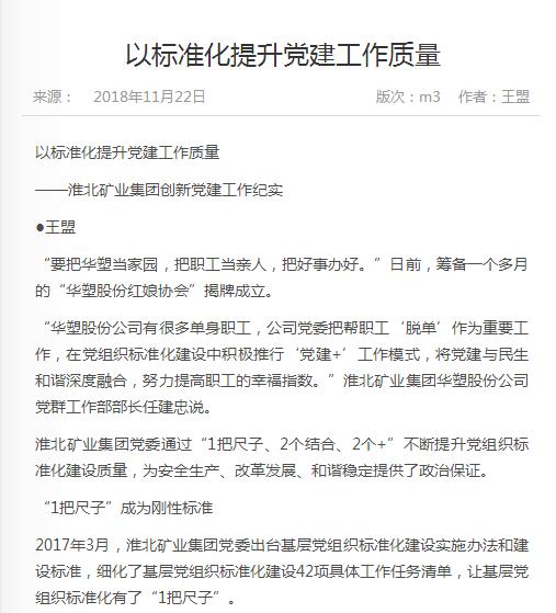 《中国煤炭报》:太子娱乐城 以标准化提升党建工作质量